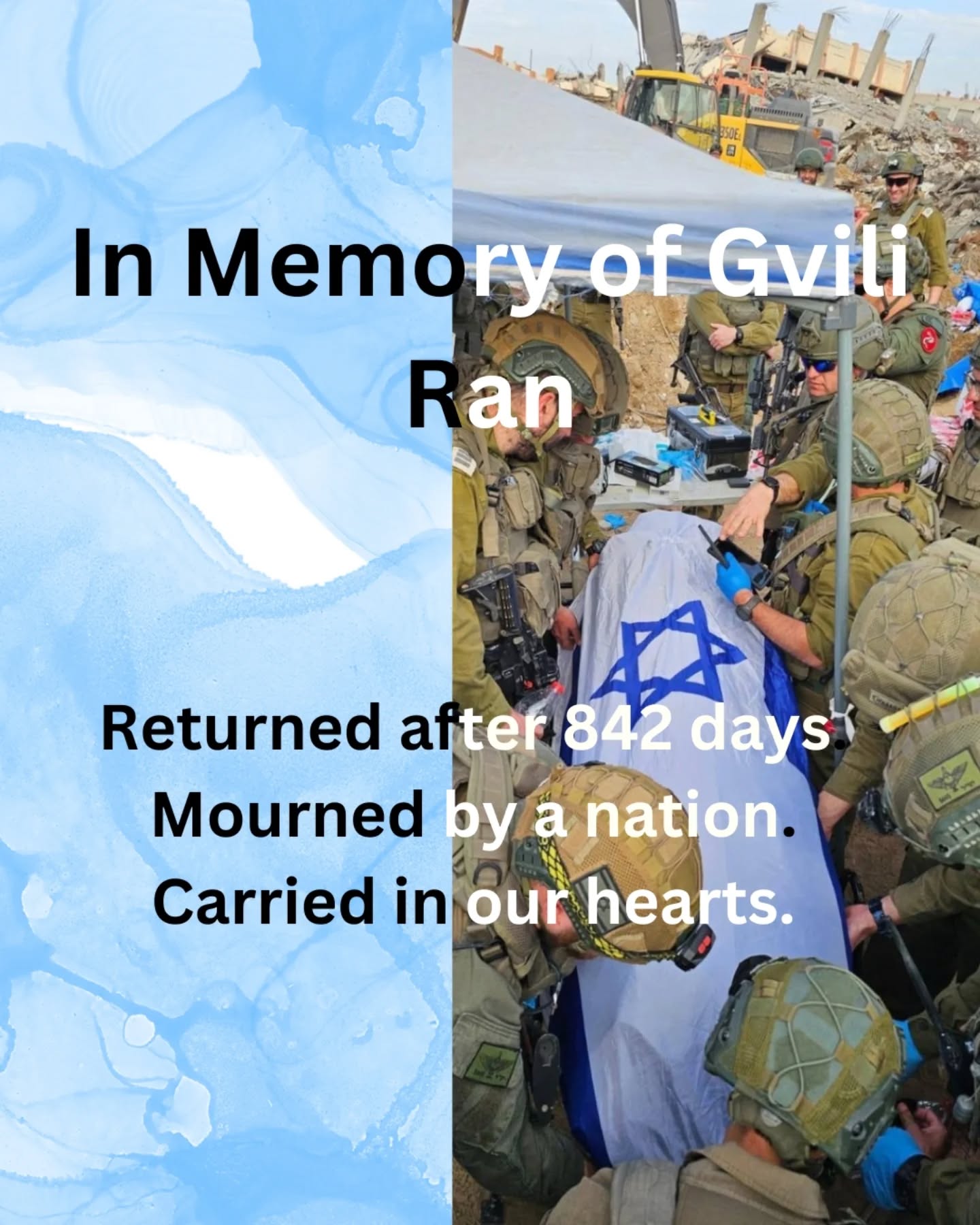 After 842 long and painful days of waiting, Gvili Ran has finally been returned home, bringing with him the quiet weight of grief and relief that words can barely contain. For nearly two and a half years, his family lived in the unbearable space between hope and uncertainty, holding on to the smallest fragments of faith while facing the cruelty of waiting. Today, that waiting is over, and though nothing can undo the loss, the truth remains: he is finally home, and may his memory be a blessing, carried forever in the hearts of all who loved him.
